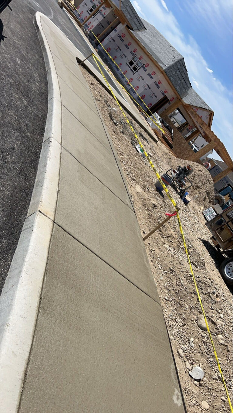 Our team at Innovative Concrete Services is delivering a high-quality concrete sidewalk and curb installation for a new development. These sidewalks are designed for both durability and aesthetics, ensuring smooth pedestrian access while seamlessly integrating with the surrounding infrastructure.